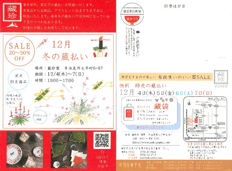 蔵払いSALE期間中、通常販売価格の20~50%off・窯元限定企画商品・アウトレット商品を敷地内すべてを使って展示販売いたします。